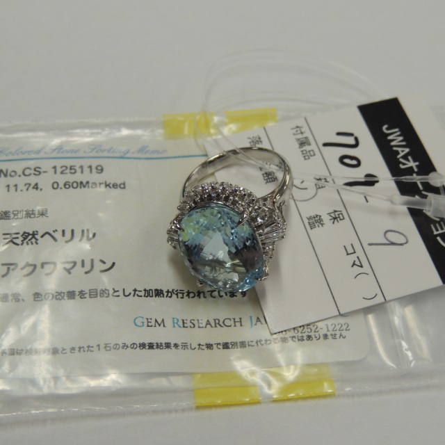 リング アクアマリン Pt900 11.80g GRJソ 石目:AQ11.74 D0.6