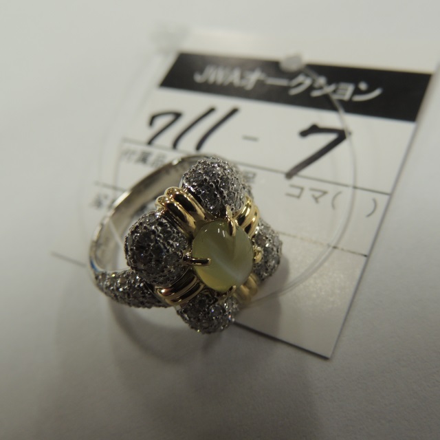 リング キャッツアイ ダイヤ Pt900/K18 12.90g 石目:1.82 D1.25