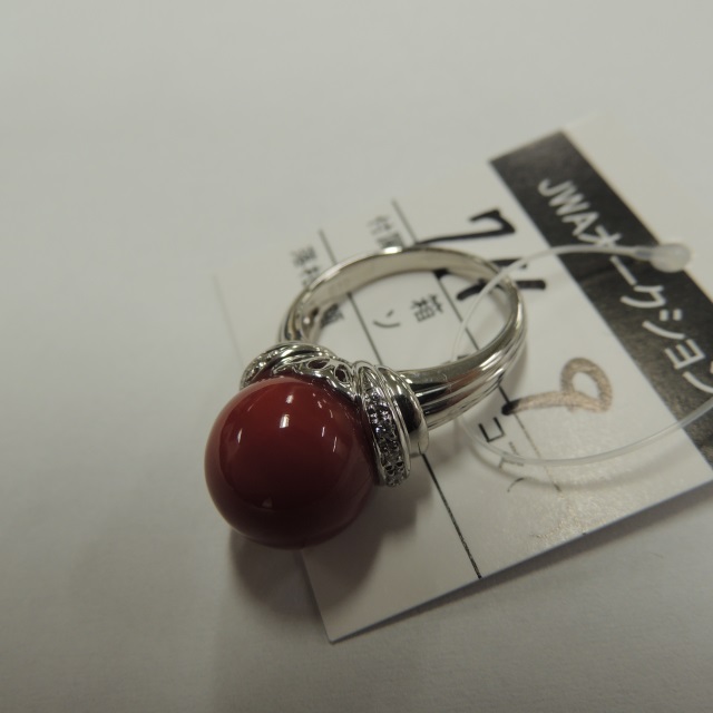 リング 赤珊瑚 14mm Pt900 17.70g 鑑 石目:0.53