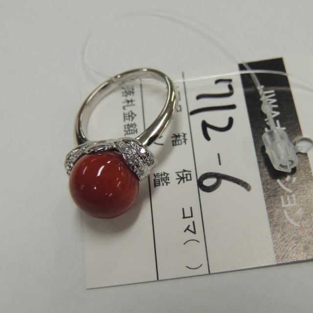 リング サンゴ 11mm ダイヤ K18/WG 6.70g 石目:D0.40