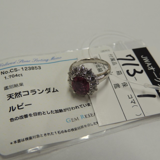 リング ルビー ダイヤ Pt900 8.20g ソ 石目:1.704 D1.10