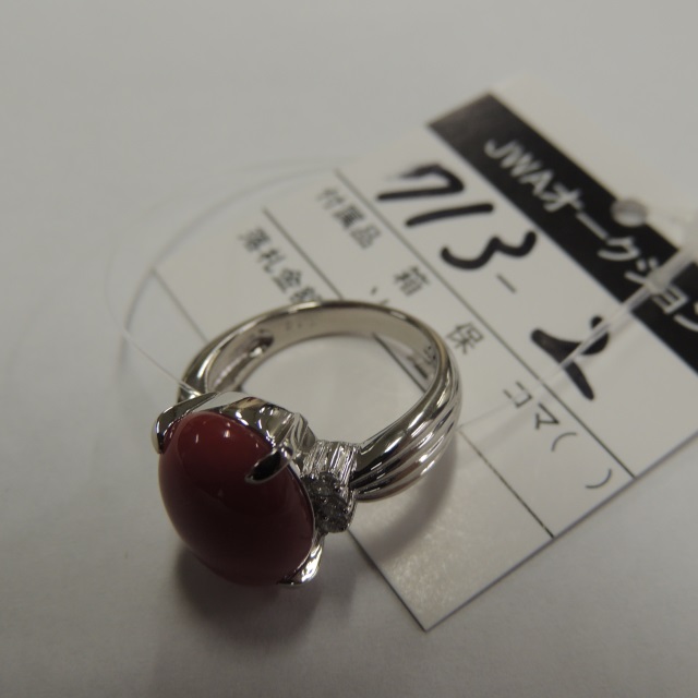 リング サンゴ ダイヤ Pt900 9.60g 石目:6.71 0.15