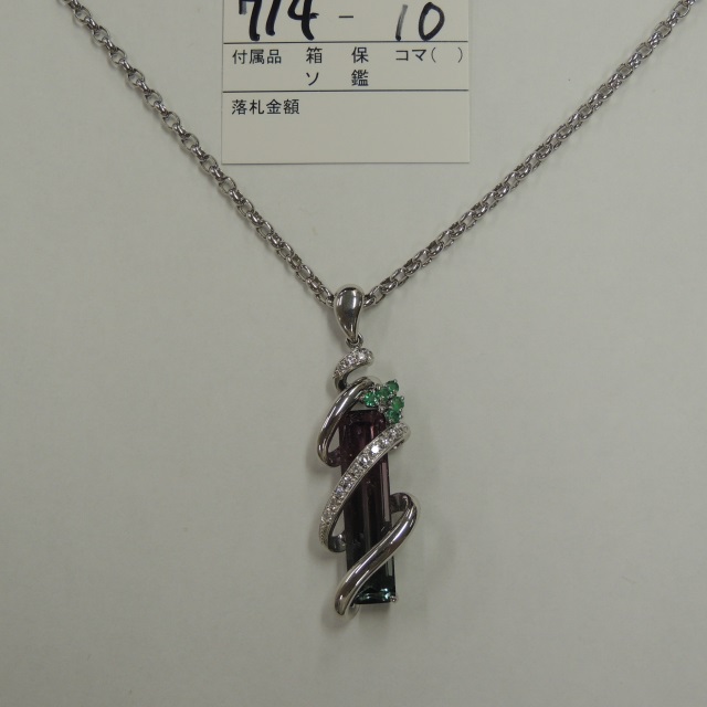 ペン・ネック トルマリン エメラルド ダイヤ Pt900 33.10g 石目:TO12.41 E0.28 FD0.20