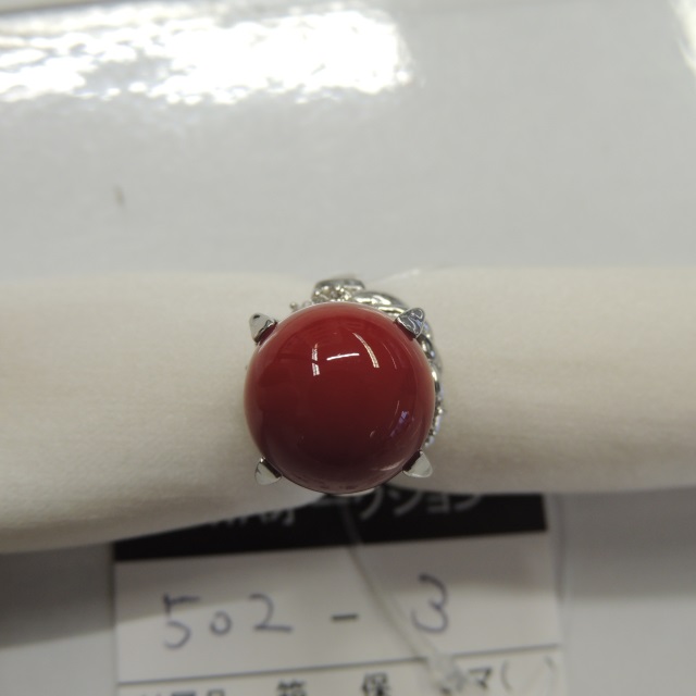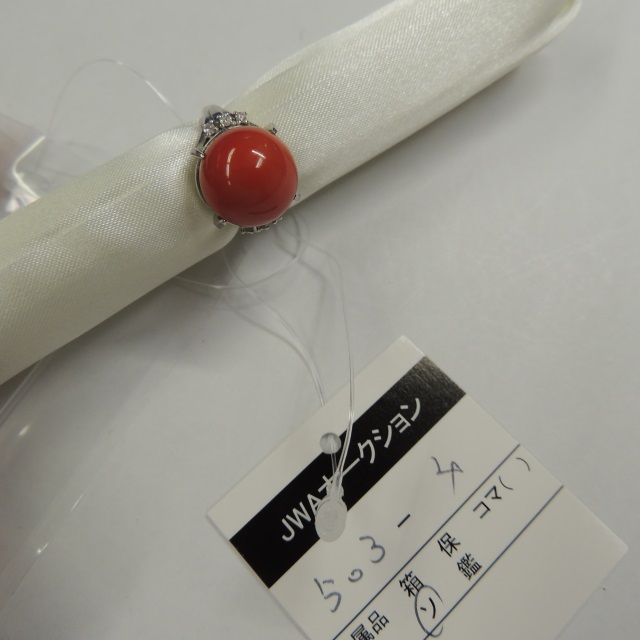 リング サンゴ 13.3mm ダイヤ Pt900 12.50g 中鑑 石目:D0.17