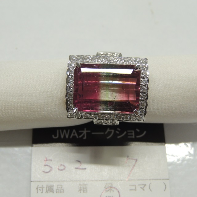 リング パーティカラートルマリン ダイヤ Pt900 18.10g GRJ鑑 石目:T13.68 D0.62