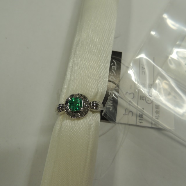 リング エメラルド ダイヤ Pt900 6.40g 中ソ 石目:E0.73 D0.40