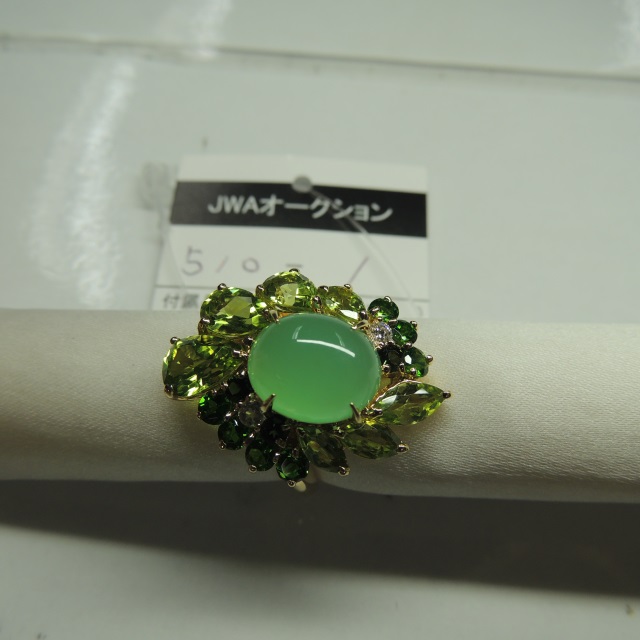 リング クリソプレーズ K18WG 8.60g 石目:C2.28 T0.60 D0.14
