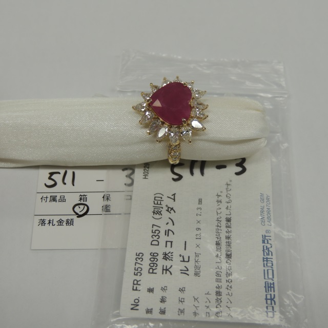リング ルビー ダイヤ K18 8.70g 石目:R3.55 D0.68