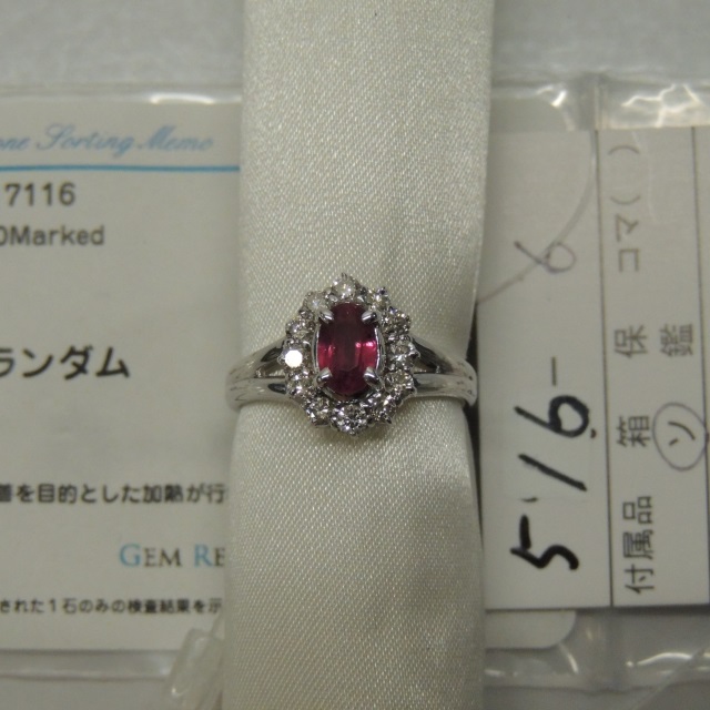 リング 非加熱ルビー Pt900 7.40g GRJ鑑 石目:1.328 D0.55