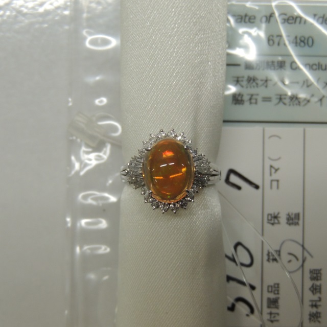 リング ファイヤーオパール ダイヤ Pt900 6.00g 中ソ 石目:O1.90 D0.50