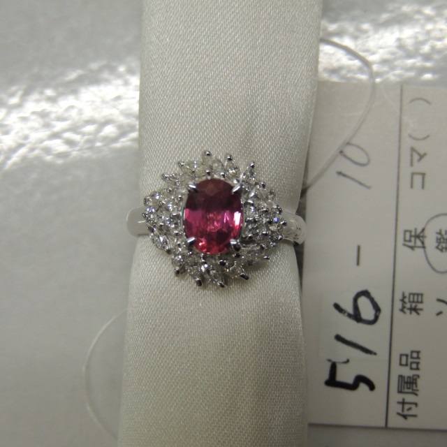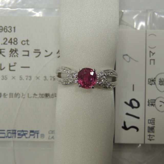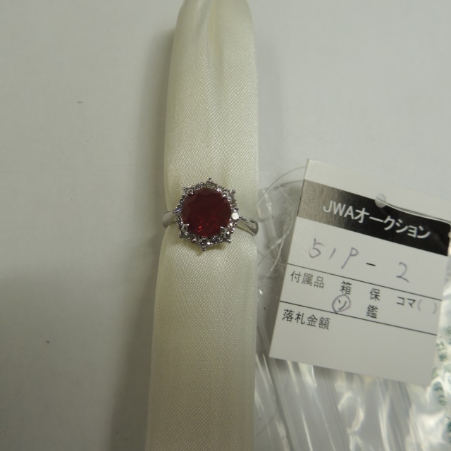 リング 非加熱ルビー Pt900 5.90g 鑑 中ソ 石目:1.248 D0.26