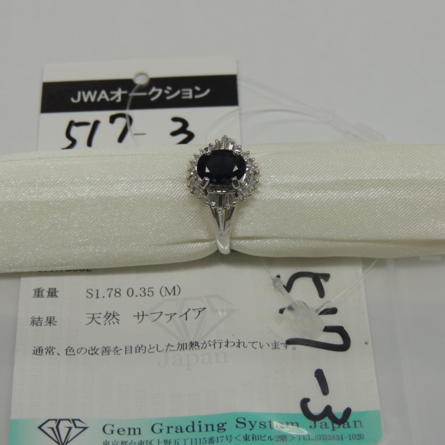 リング サファイア Pt900 5.20g ソ 石目:1.78 D0.35