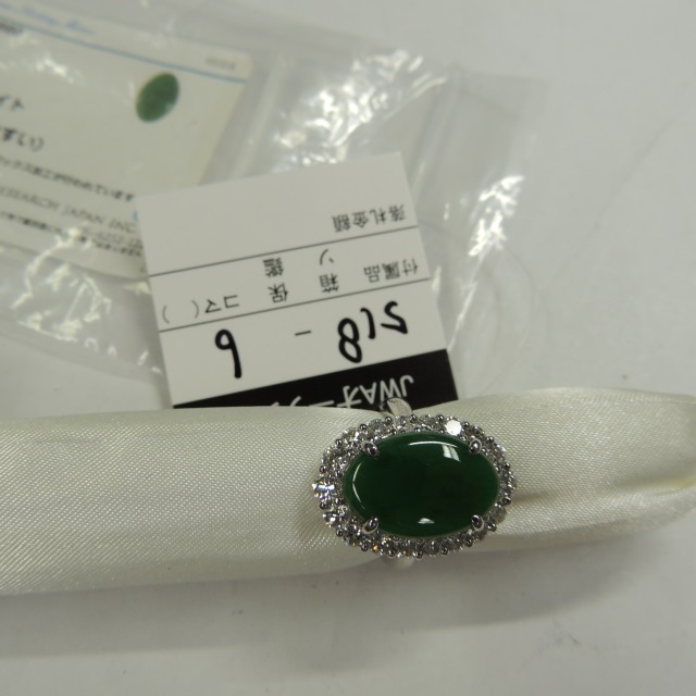 リング ヒスイ ダイヤ Pt900 8.71g 中ソ 石目:1.166 1.55