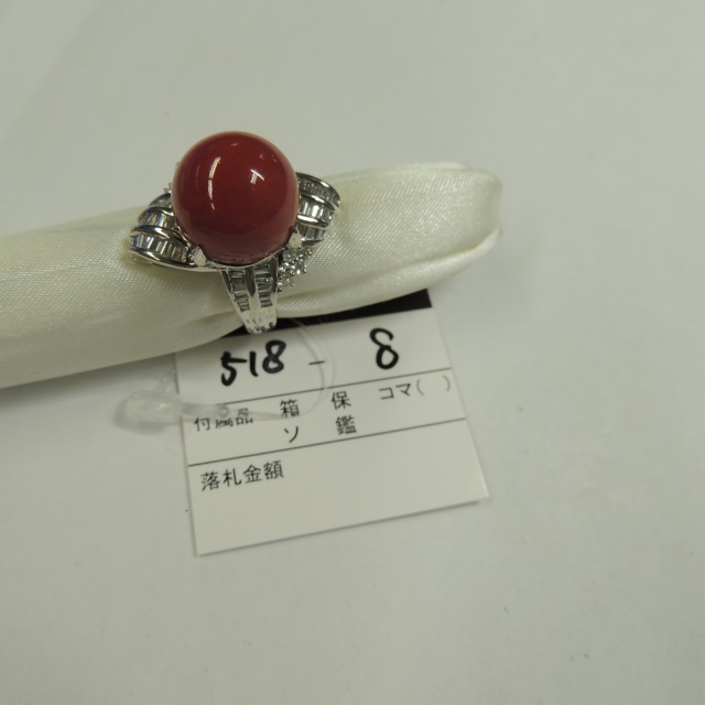 リング 珊瑚 ダイヤ Pt900 19.12g 石目:1.00