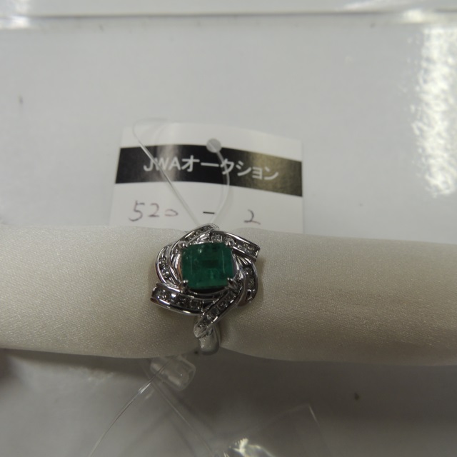 リング エメラルド ダイヤ Pt900 5.70g GRJソ 石目:E0.56 D0.50
