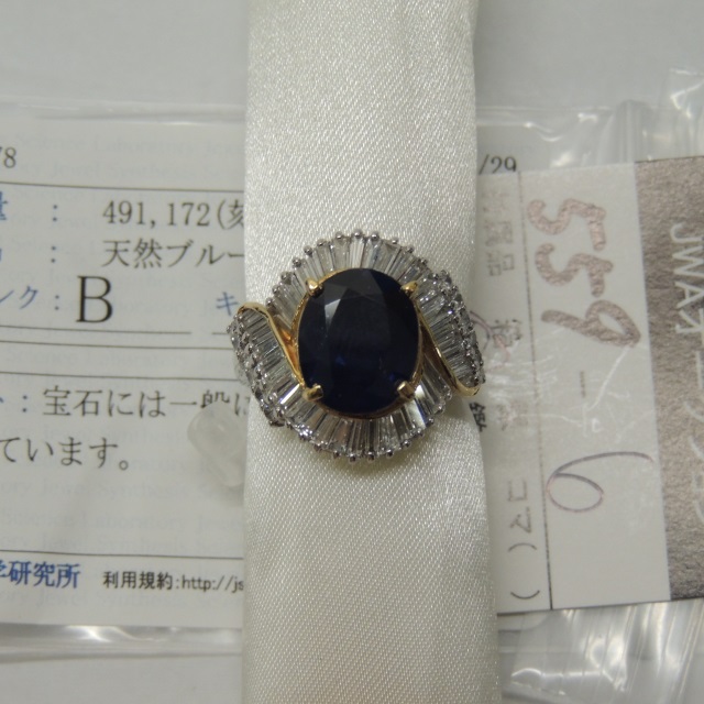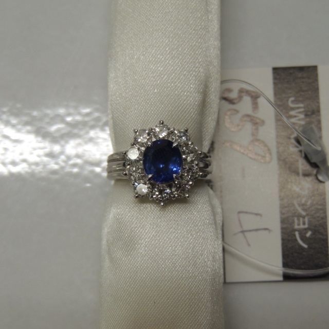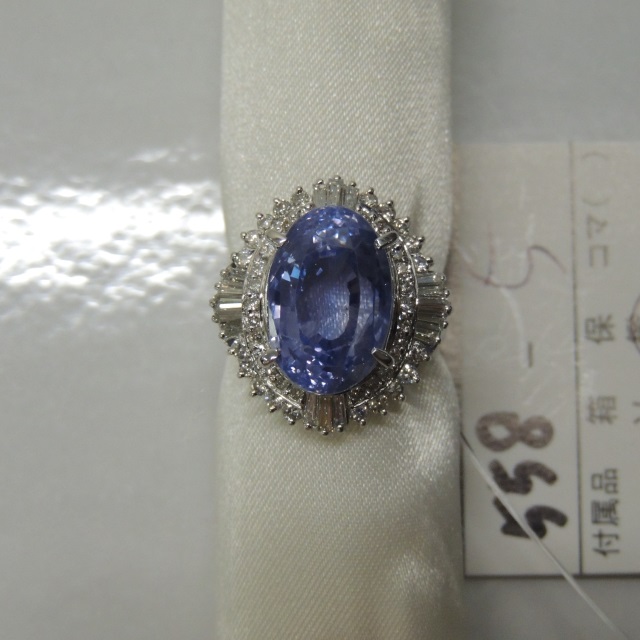 リング 非加熱サファイア ダイヤ Pt900 13.30g 中鑑 石目:14.977 D1.02