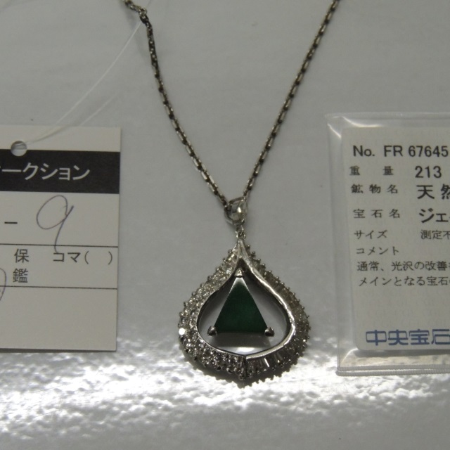ペン・ネック ヒスイ ダイヤ Pt900/Pt850 13.50g 中ソ 石目:2.13 1.47