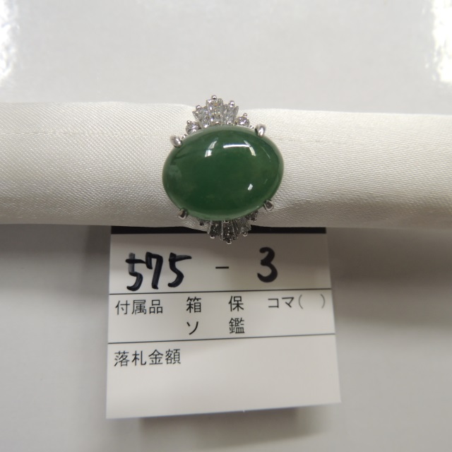 リング ヒスイ ダイヤ Pm900 9.30g 石目:10.22 0.74