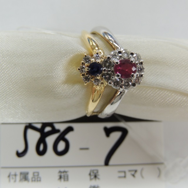 リング ルビー サファイア K18/Pt900 6.10g 石目:R0.37 S0.12 D0.37
