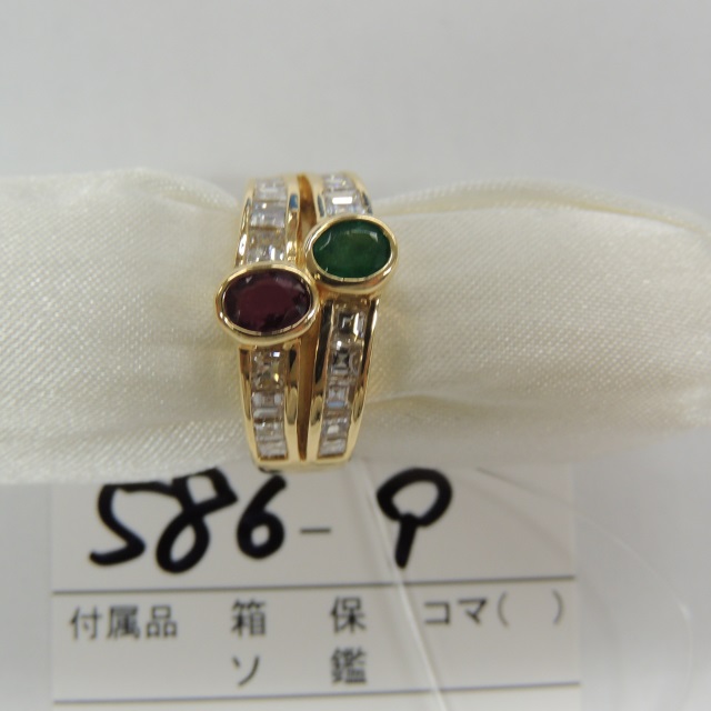 リング エメラルド ルビー K18 8.90g 石目:E0.35 R0.55 D1.25