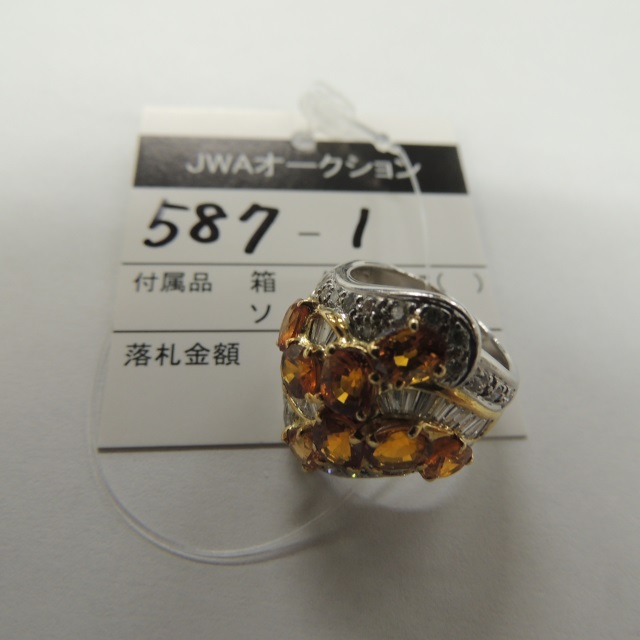 リング ゴールデンサファイア ダイヤ K18/Pt900 10.30g 石目:S4.31 D1.09
