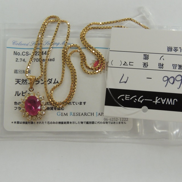 ペン・ネック ルビー ダイヤ フラクチャー K18 9.30g 石目:R2.74 D0.70