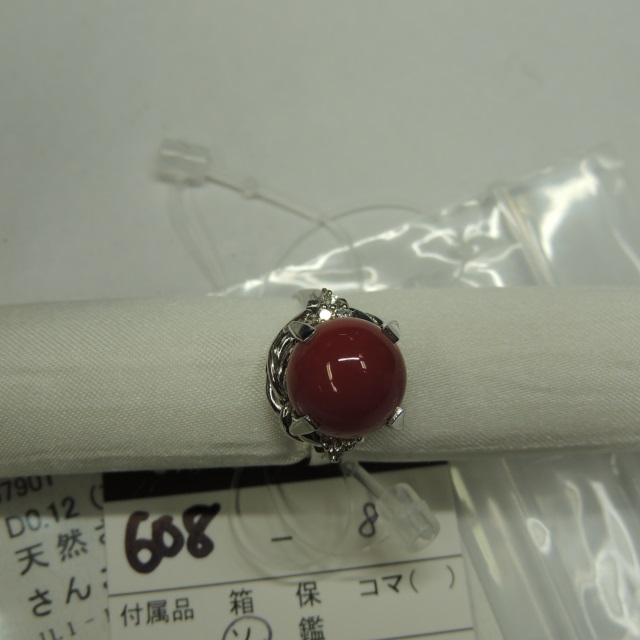 リング サンゴ 11.1mm ダイヤ Pt900 8.80g 中ソ 石目:D0.12
