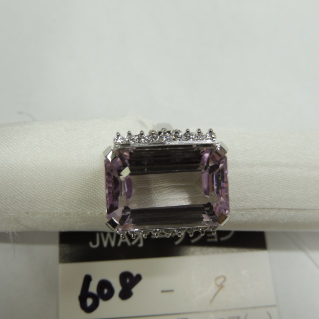 リング クンツァイト ダイヤ Pt900 12.30g 石目:17.50 D0.37