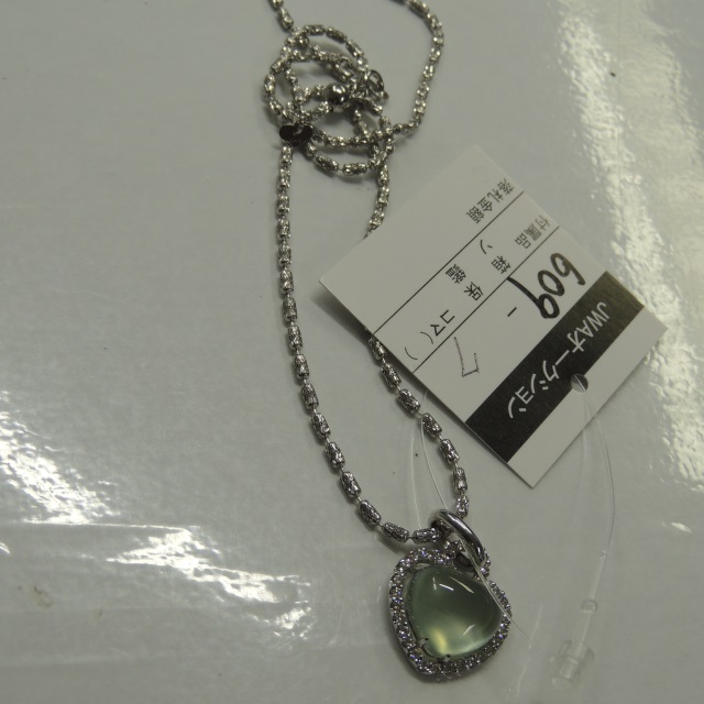 ペン・ネック 緑石 ダイヤ K18WG 11.80g 石目:7.0 5.0