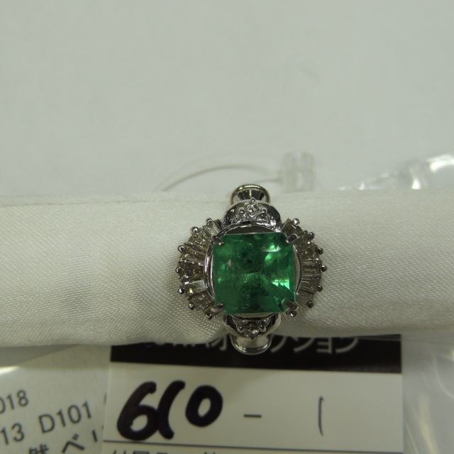 リング エメラルド ダイヤ Pt900 11.20g 中ソ 石目:E3.13 D1.01