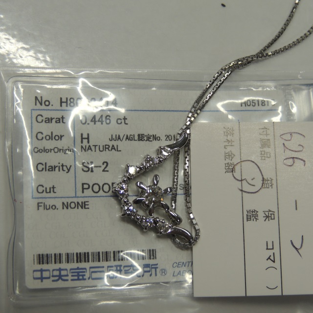 ペン・ネック ダイヤ H/SI2/POOR Pt850/Pt900 10.10g 中ソ 石目:D0.446 0.40