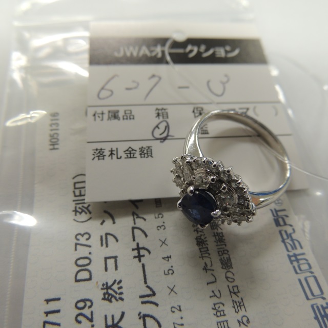 リング サファイア Pt900 7.00g 中ソ 石目:S1.29 FD0.73