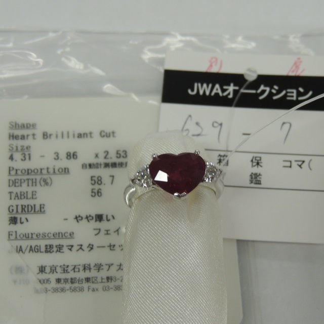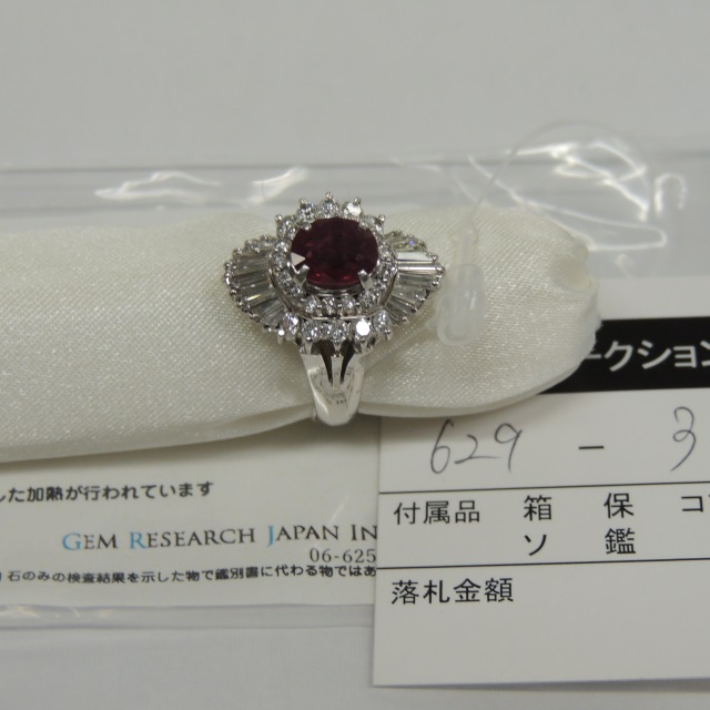 リング ルビー ダイヤ G/SI1-2 Pt900 9.50g GRJソ ソ2 石目:R3.22 D0.249 D0.245