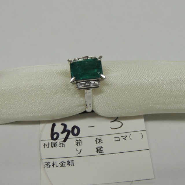 リング エメラルド ダイヤ Pt900 8.20g 石目:3.06 D0.20