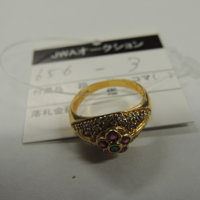 リング エメラルド ルビー K18 4.10g 石目:D0.29