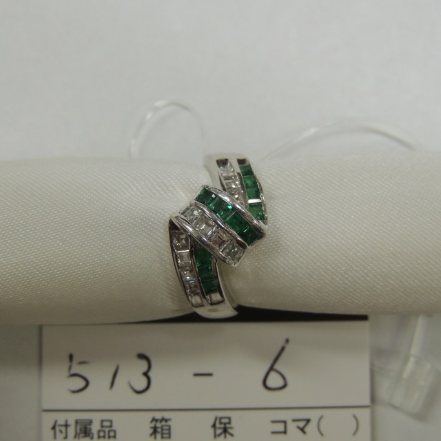 リング エメラルド ダイヤ Pt900 5.90g 石目:E0.74 D0.50
