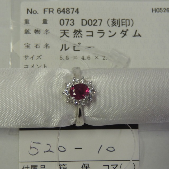 リング ルビー ダイヤ Pt900 4.20g 中ソ 石目:R0.73 D0.27