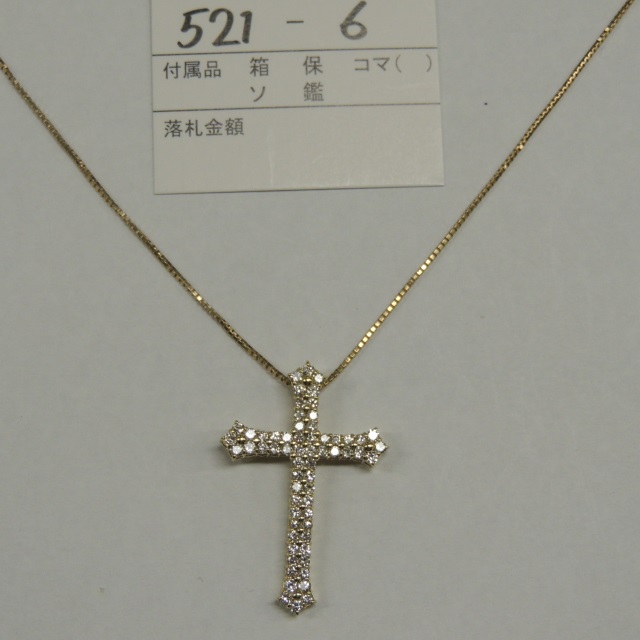 ペン・ネック クロス ダイヤ K18YG 4.50g 石目:D:1.00