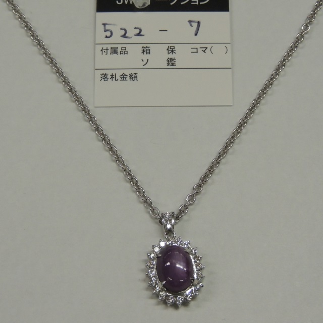 ペン・ネック スターサファイア ダイヤ K18WG 12.50g 鑑 石目:11.7 0.86