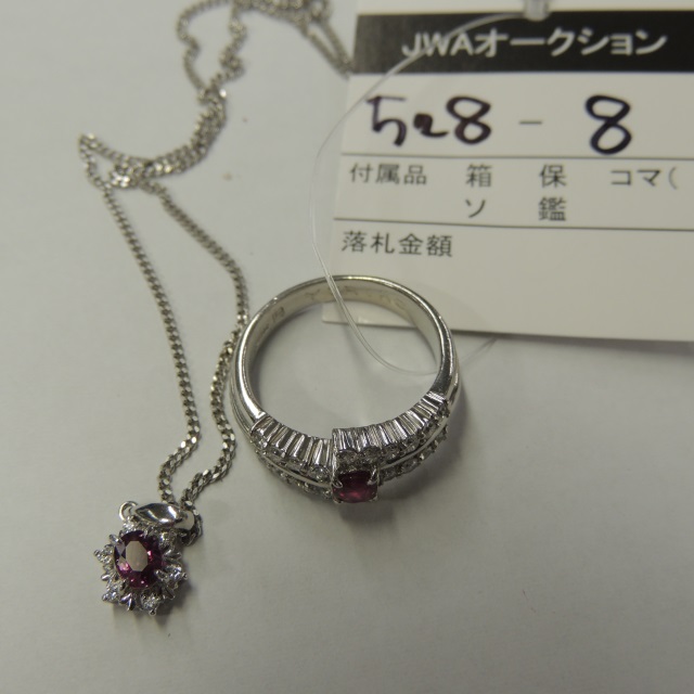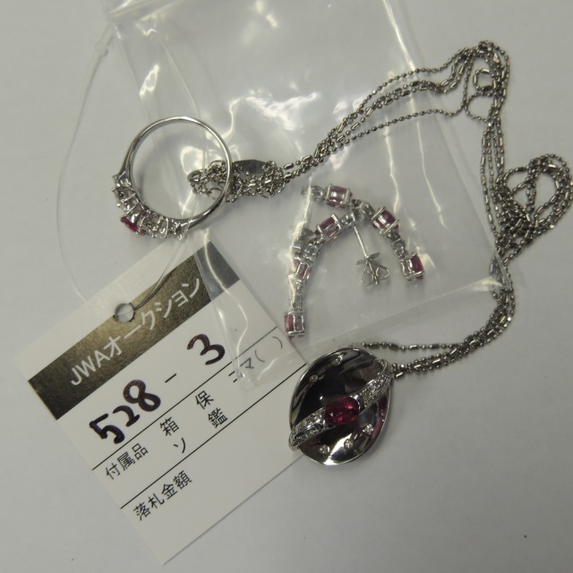 ペン・ネック リング ピアス 3点山 ルビー ダイア 総重量 K18WG/PT900 18.30g 石目:R2.75 FD0.77