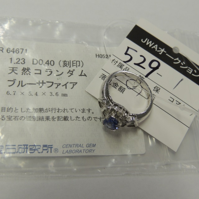 リング サファイヤ ダイヤ 1Pメレ取れ Pt900 7.90g 中ソ 石目:S1.23 D0.40