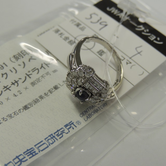 リング 色石 ダイヤ Pt900 7.20g 石目:S1.228 D:0.41