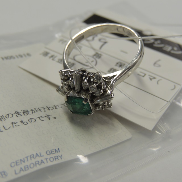 リング エメラルド ダイヤ Pt900 6.80g 中ソ 石目:E0.76 D0.65