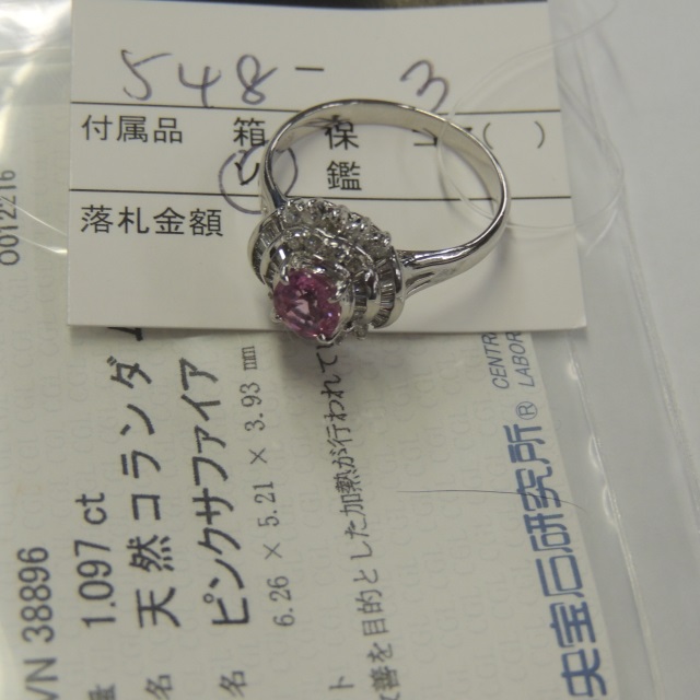 リング ピンクサファイア ダイヤ Pt900 5.30g 中ソ 石目:PS1.097 FD0.54