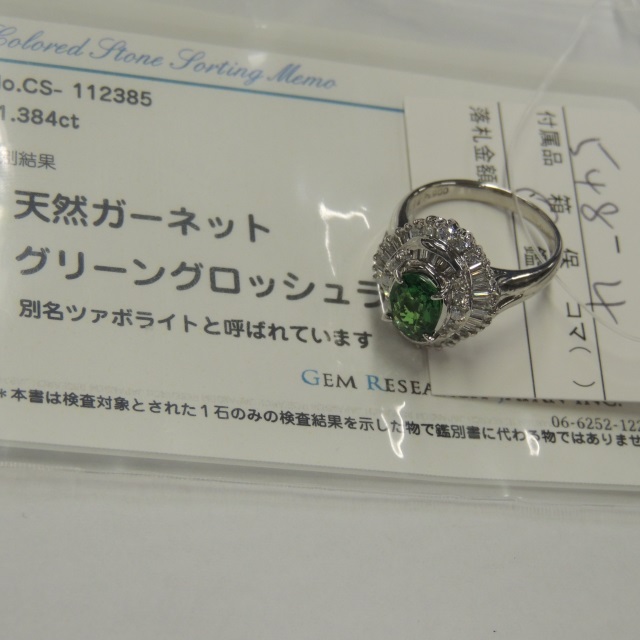 リング グリーンガーネット ダイヤ Pt900 9.10g GRJソ 石目:GG1.384 D0.90