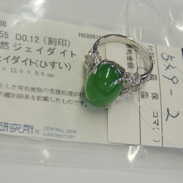 リング ヒスイ ダイヤ 鑑真処理 750 9.60g 中ソ 石目:J17.55 D0.12