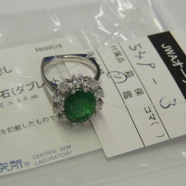 リング エメラルド ダイヤ Pt900 12.40g 中鑑 石目:E4.12 FD0.752