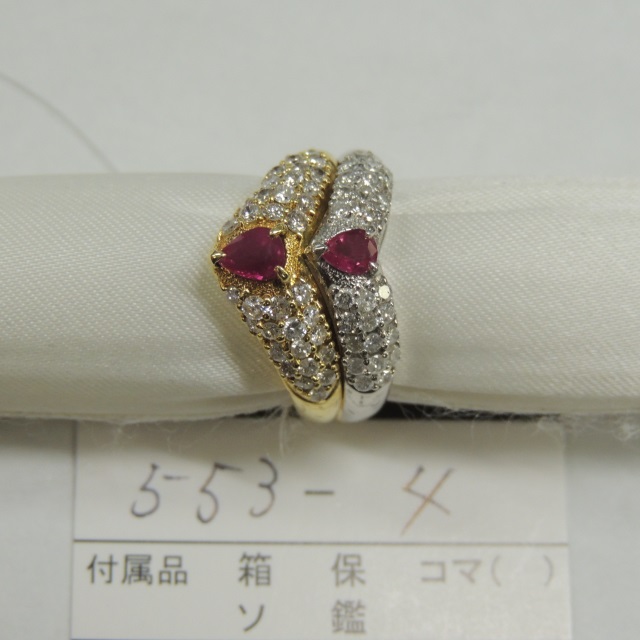リング ルビー ダイヤ K18/Pt900 9.50g 石目:R0.69 FD1.04