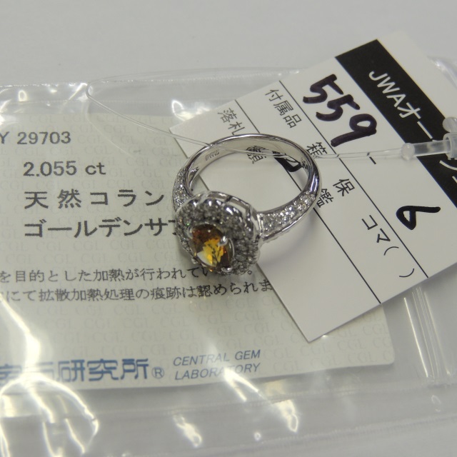 リング ゴールデンサファイア ダイヤ Pt900 7.10g 中ソ 石目:2.055 1.14