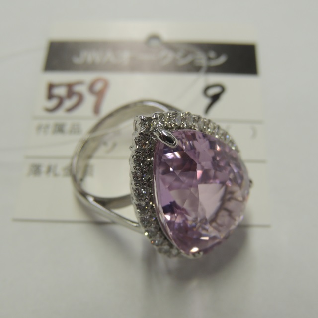 リング クンツァイト ダイヤ Pt900 14.00g 石目:22.26 1.02